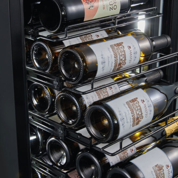 - A larétal positioning of your wines thanks to the 5 sliding steel wire shelves and 1 fixed shelf